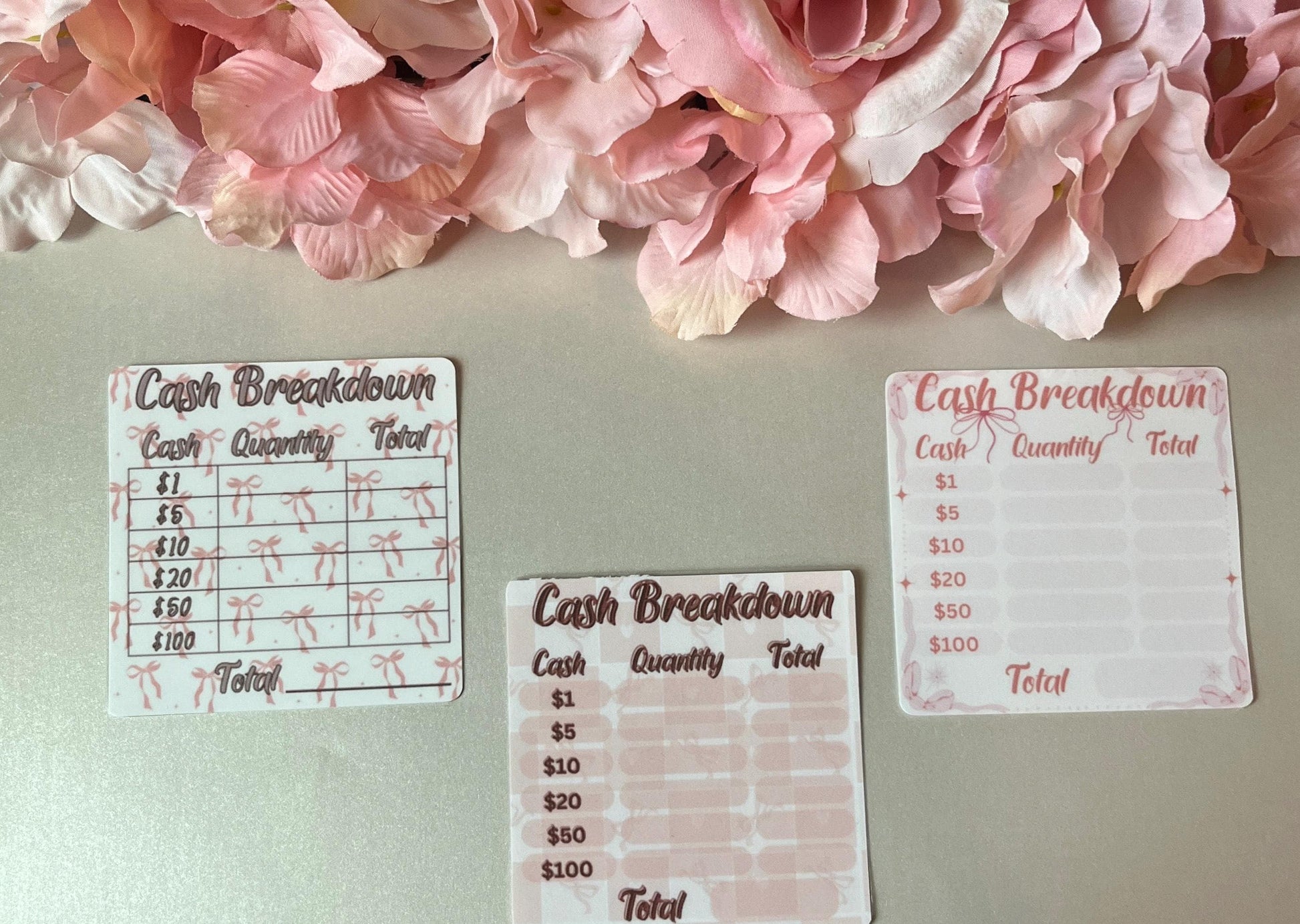 6 Coquette Cash Teller Slips | Bank Withdrawal, A6 Cash Budget, Reusable Aesthetic Budgeting Tools, Budget Binder, Cash breakdown