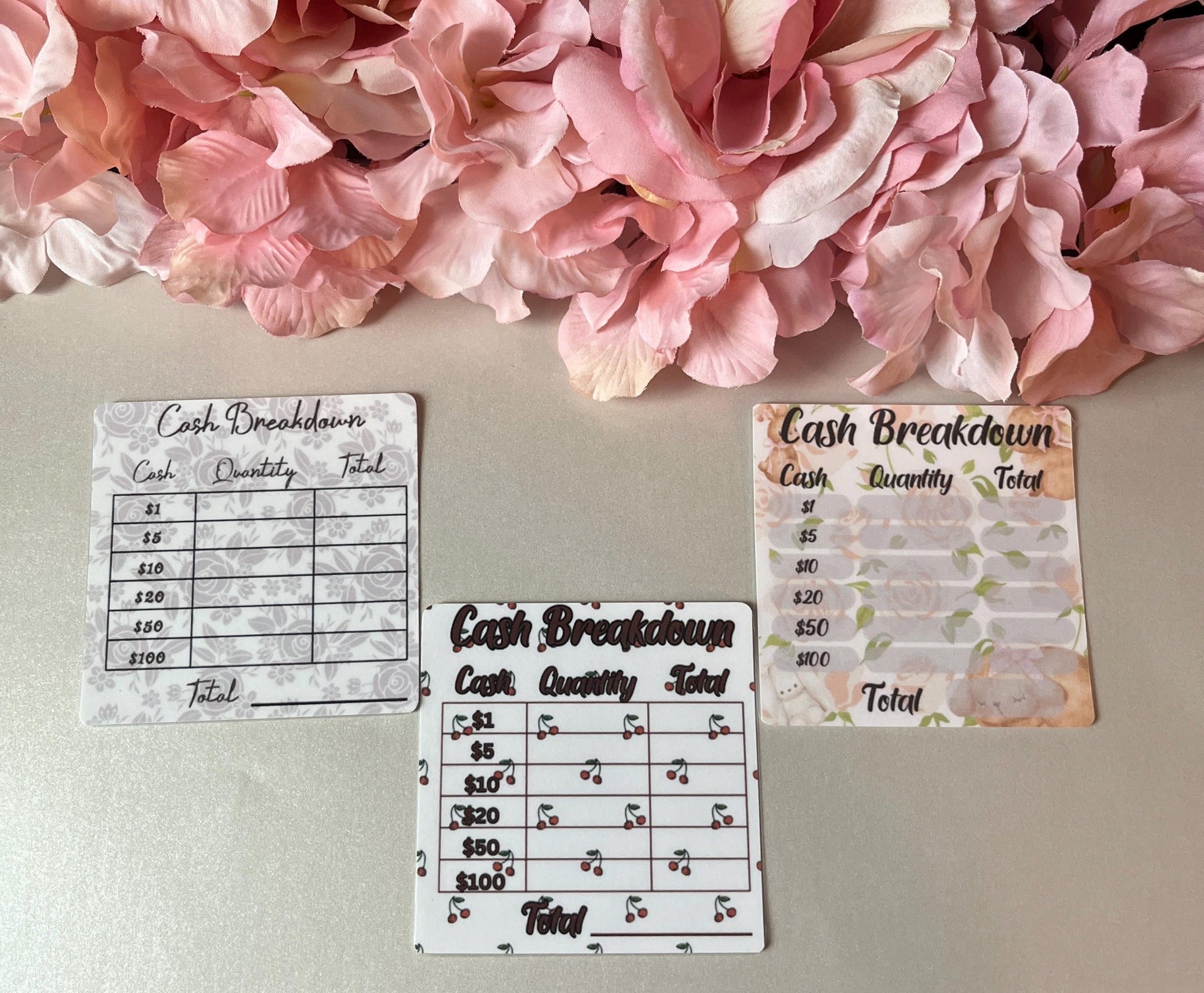 Make your bank trips extra cute and totally stress-free with these adorable cash teller slips! 💵✨ Designed for cash stuffers and budgeters, these slips help you organize your withdrawals by denomination—so your teller knows exactly what to hand over. Plus, they’re super cute, so your budgeting routine stays both practical and pretty! 🌈🎀 Hand made this set of 6 themed slips will help! They are laminated for easy reusability. Easy to fit into any wallet they are only 3 x 3 inches.