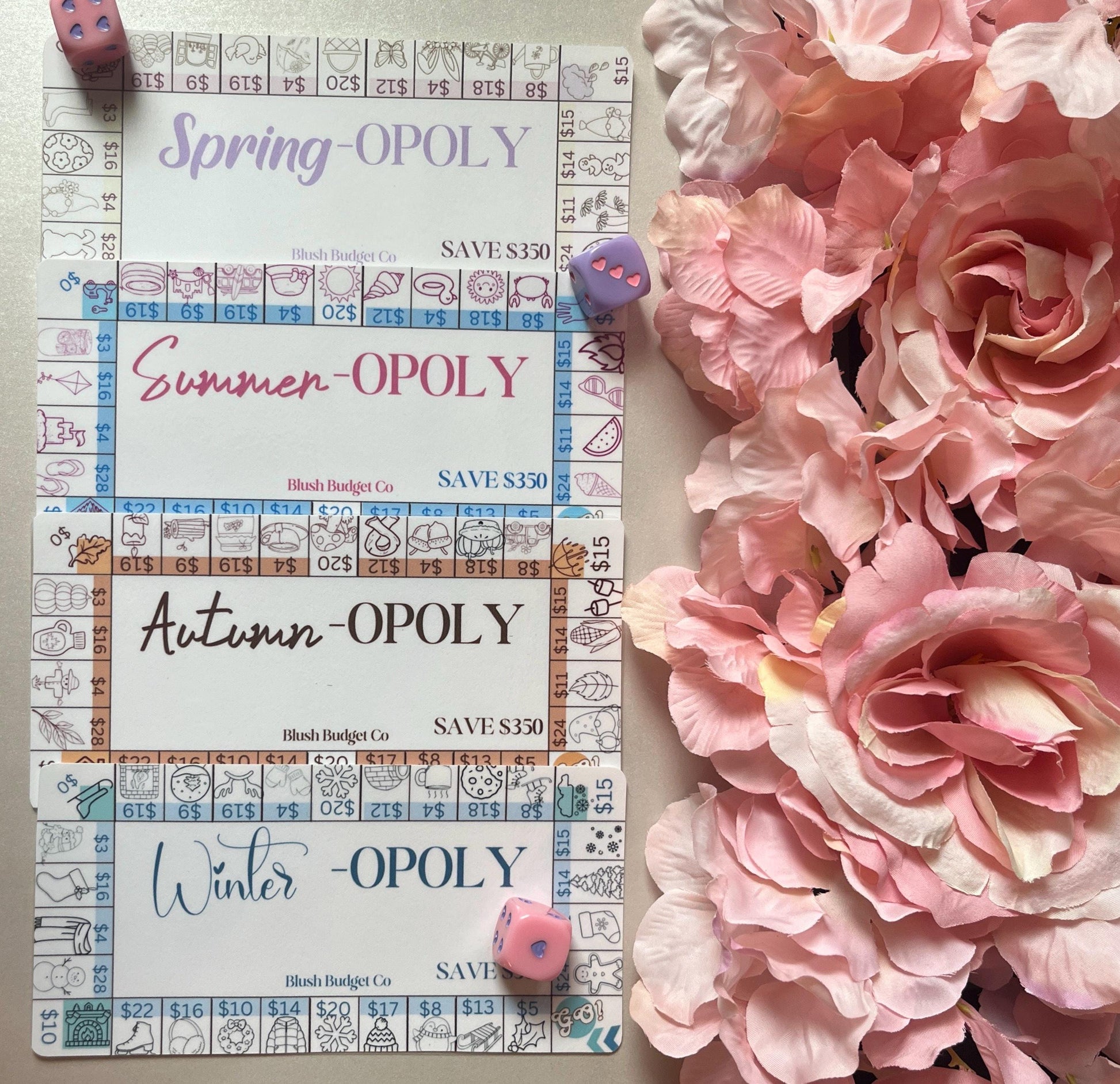 Get ready to save through the seasons! These cute savings games will keep you on track for the whole year! Available in a low income option as well! Get all four of our Season-OPOLY games in one easy to get bundle! This bundle also comes with two of our special edition heart dice! Each insert is printed on high quality cardstock and laminated for reuse! . Rounded corners and approximately 6 x 3. This item is handmade!