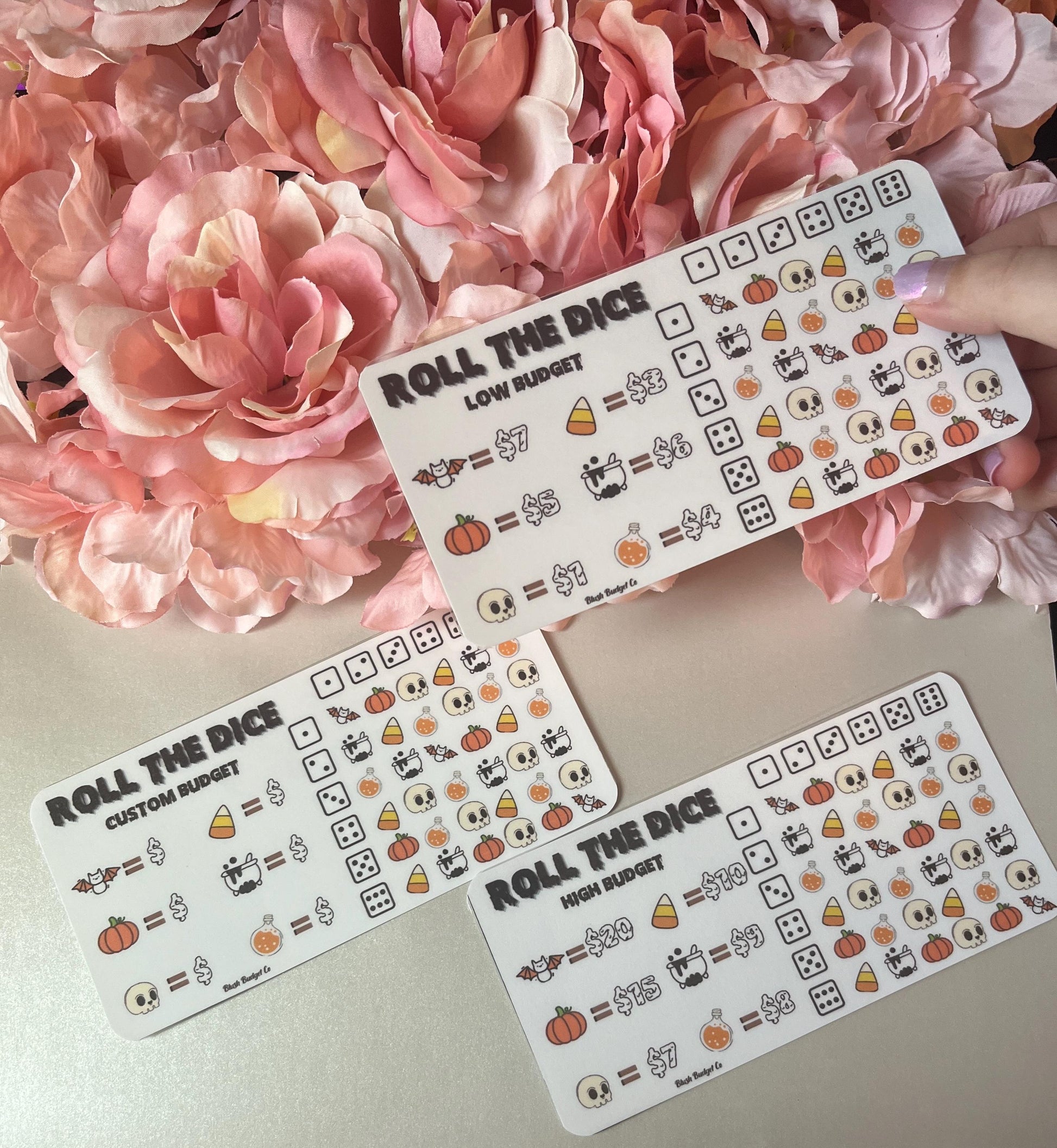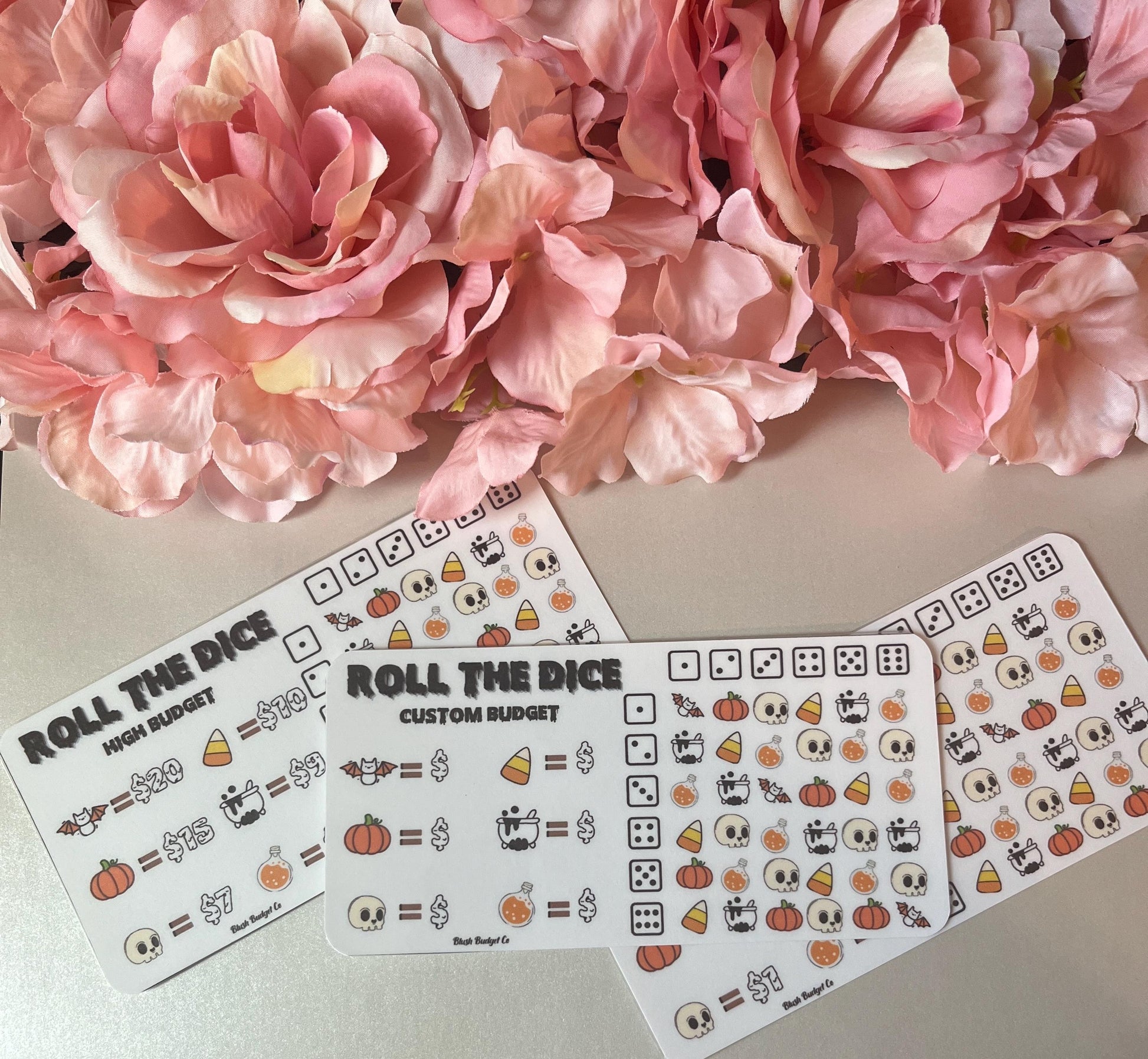 Want a fun twist on trick or treat? This fun roll the dice savings game will help you stay on track during the spooky season! Available in three budget options or a bundle of all three! This listing is for one savings game. This item comes with a laminated insert so they can be reused! Rounded corners and approximately 6 x 3. This item is handmade! and laminated for reuse!
