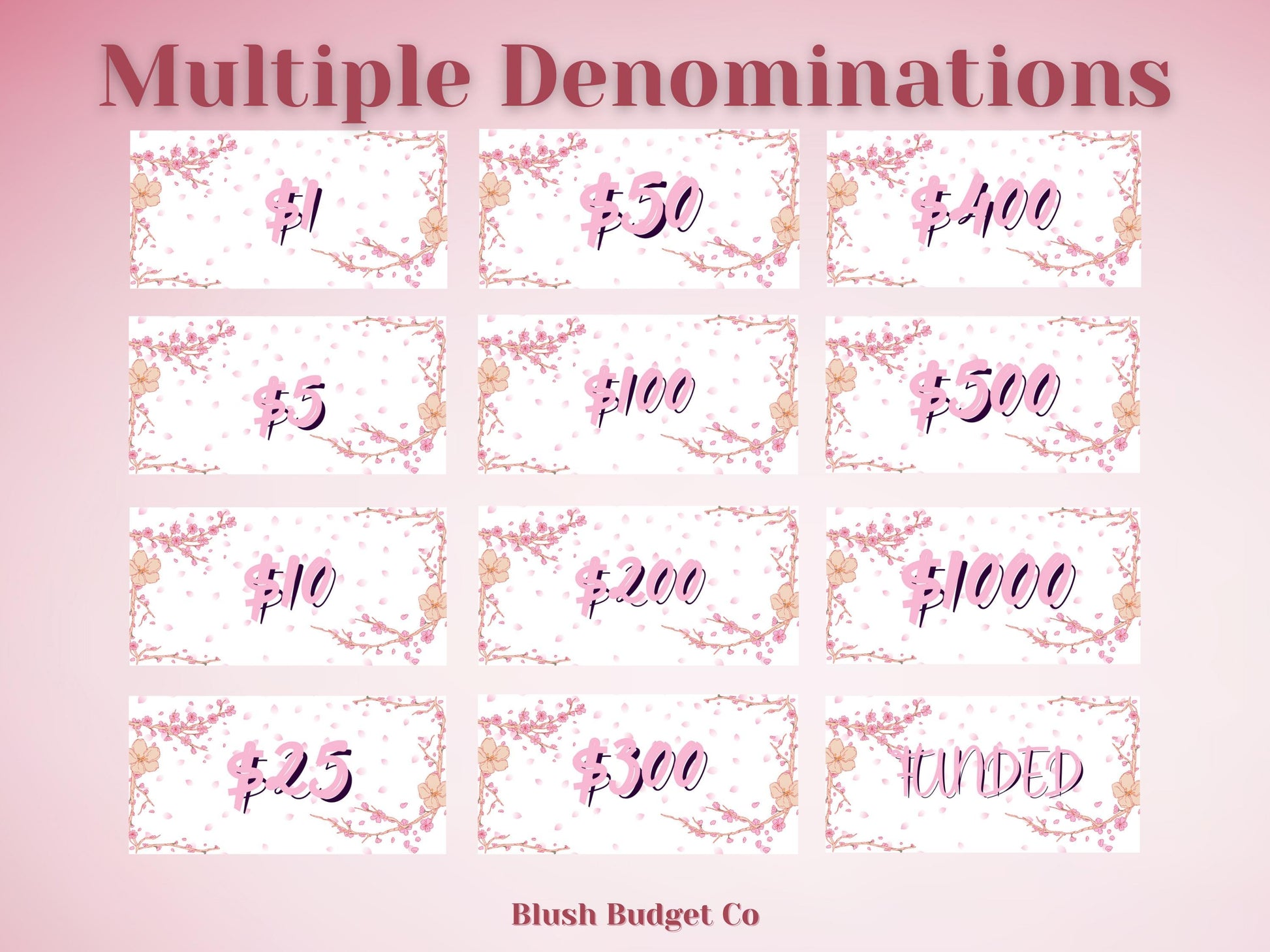 ✔️ Customizable denominations ($100, $500, $1,000, etc.)