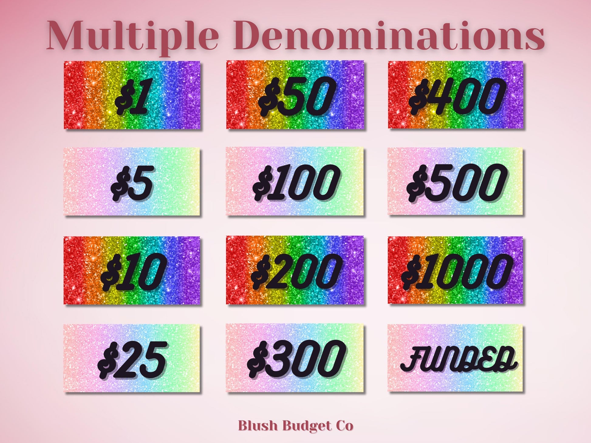 Set of 3 Glitter Rainbow Placeholders | Prop Money, Cash Stuffing, Cash Placeholder, A6 Cash Budget, Cash Envelope System