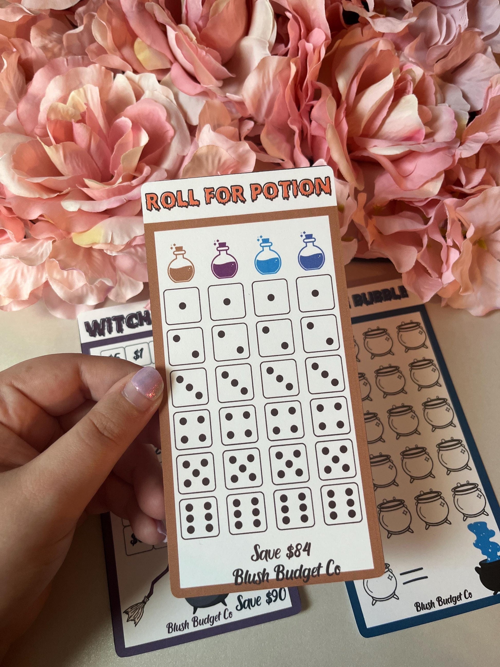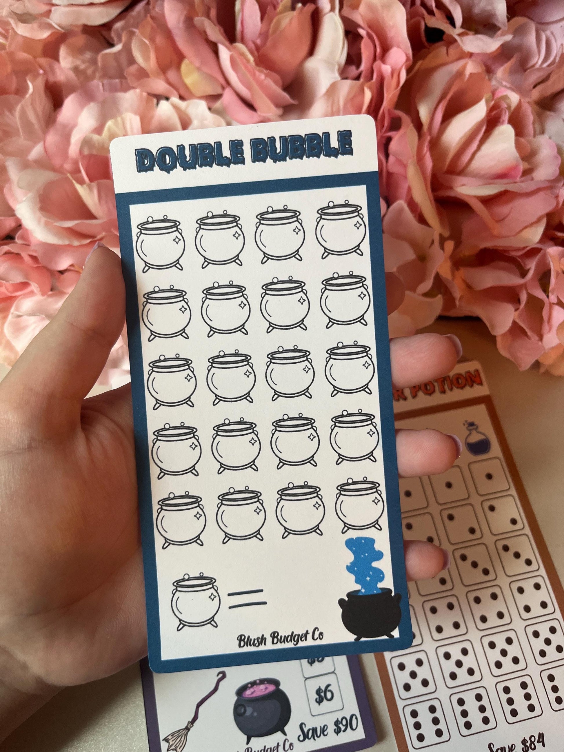 Brew potions with your savings budget! This Halloween season use this cute simple savings challenge. Available in laminated or un-laminated to choose from! Thick laminated cardstock with rounded corners and approximately 6 x 3. This item is handmade and laminated for reuse!